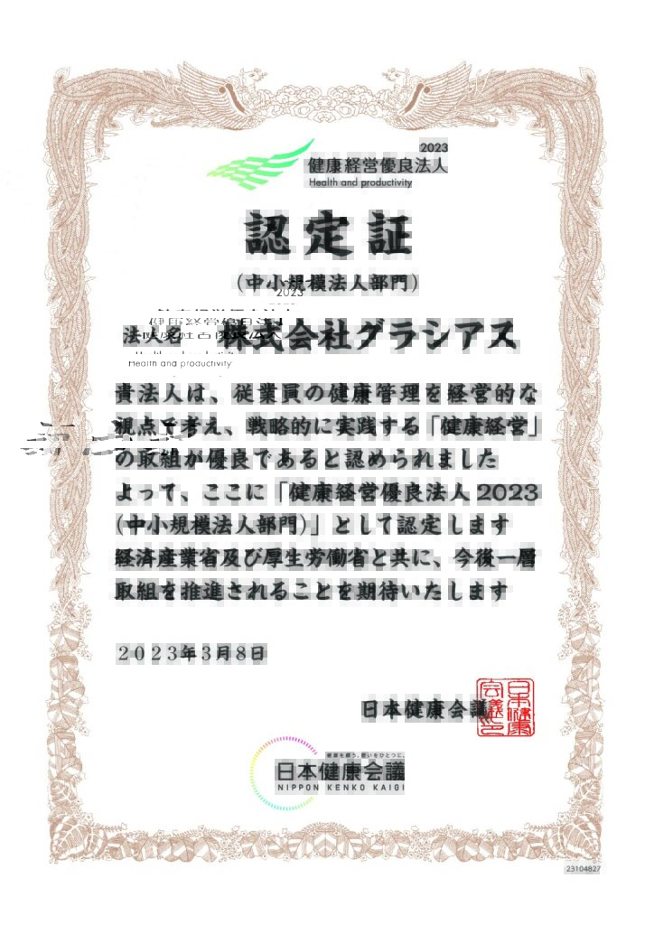 当社は、経済産業省が認定する健康経営優良法人認定制度において「健康経営優良法人2023」に認定されましたことをお知らせいたします。